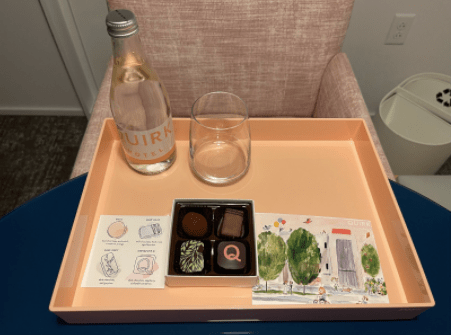 - Welcome gift we got a box of chocolates and a glass bottle of water